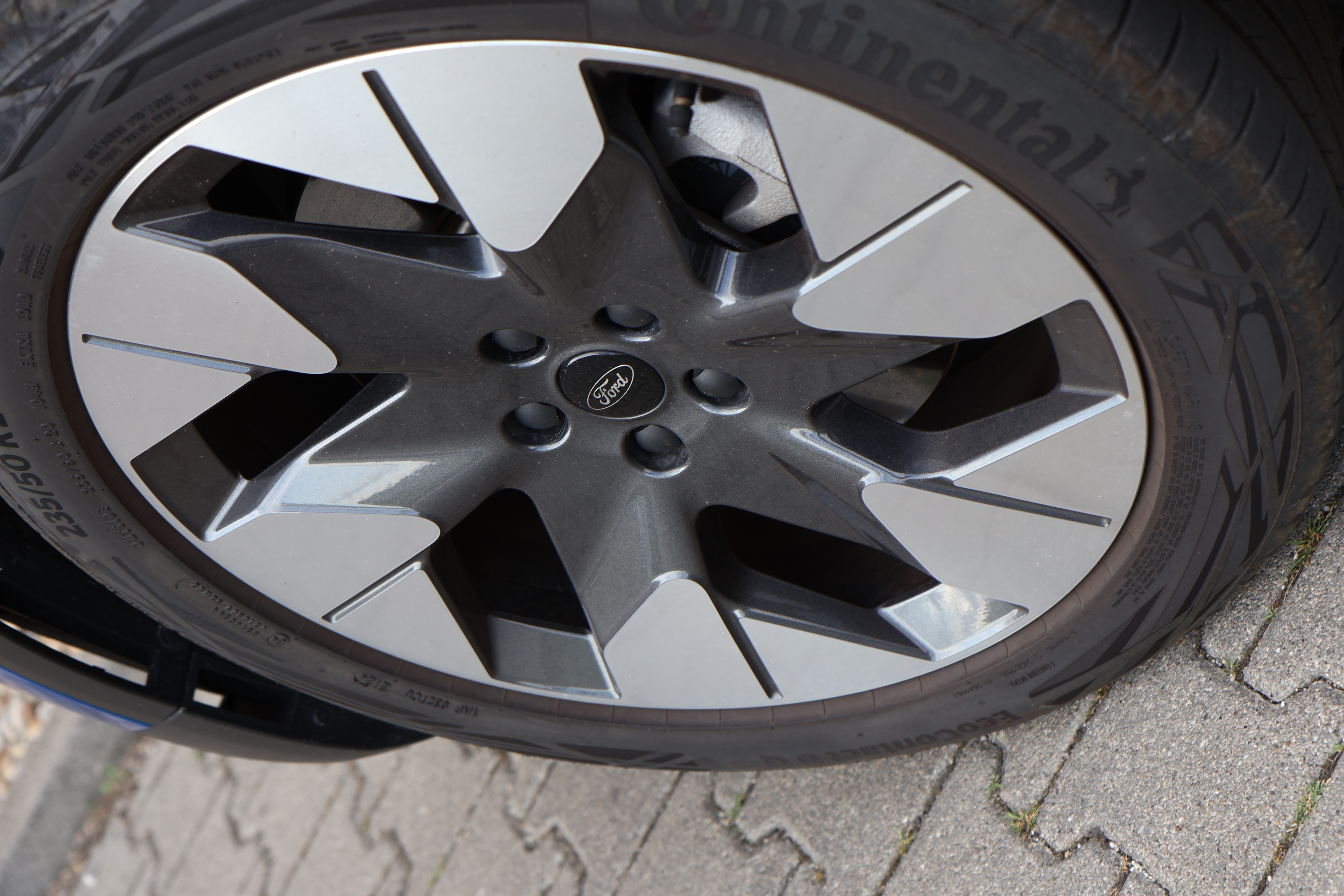 A Volkswagen unokatestvéreknél az ID.4/ID.5 változatoknál jórészt csak egy csapott hátsó tetővonal a különbség, ami némi fej- és csomagtér árán sportosabb külsőt kölcsönöz. A Ford szerencsére, ennél bátrabb volt, és bár a műszaki alapok megegyeznek, a két kocsi minden külső részletében más formát kapott. A hűtőmaszk nélküli orr és a jellegzetes első lámpák mellett az autó fara is könnyen felismerhetőre sikerült, a különleges egyedi, múltidéző könnyűfém keréktárcsák pedig nagyon sokat dobnak az oldalsó profilon.